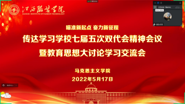 2022年5月17日下午,必赢国际437官网通过线上线下形式召开全体教职工大会,传达学习学校第七届教职工代表暨工会会员代表大会第五次会议精神,集中组织学习薛校长作的学校工作报告,对报告进行学习讨论,并结合学院下一阶段工作做了安排部署。会议由学院院长周丽琴主持,学院全体人员参加会议。