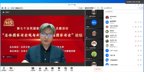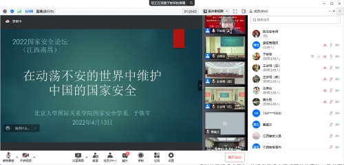 2022年4月13日至14日,江西省委国安办联合北京大学、南昌大学共同举办了以“总体国家安全观与新时代中国国家安全”为主题的“全民国家安全教育日主题活动——2022 国家安全论坛”。必赢国际437官网教师通过线上腾讯会议观看直播,线上听取了中国人民解放军国防大学教授、国家安全学院原副院长、国务院学位委员会国家安全学科评议组成员唐永胜教授,北京大学国际关系学院国家安全系主任、北京大学国际战略研究院副院长于铁军教授分别以《坚持总体国家安全观 走出一条中国特色国家安全道路》《在动荡不安的世界中维护中国的国家安全》为题作大会主题报告。观看论坛的老师纷纷表示,国家安全离我们很近,而且就在身边,每一个人都应该参与到维护国家安全工作中来,同时作为一名思政课教师,要以全民国家安全教育日为契机,向广大青年学生讲好国家安全教育课,增强国家安全意识,筑牢安全防线,共同维护好国家安全。