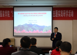 12月9日晚上,井冈山大学教授、中国井冈山干部学院特聘教授李忠以《学习贯彻习近平总书记考察江西讲话精神——井冈山斗争与井冈山精神》为题,从习近平总书记在江西的考察足迹为主线,带领大家共同学习了习近平总书记考察江西重要讲话精神,他还从井冈山革命根据地的历史地位、基本概况、井冈山斗争史、井冈山斗争经验、井冈山精神及历史价值等方面作了详细介绍。