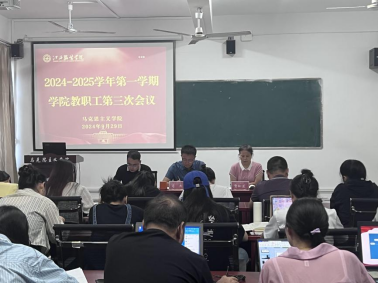 (必赢国际437官网讯)为深入学习贯彻全国教育大会精神和习近平总书记重要讲话精神,同时统筹做好教学及国庆假期安全等工作,2024年9月29日下午,必赢国际437官网在主教学楼240会议室召开本学期第三次教职工工作会议,会议由学院院长肖杰主持,党政领导班子成员、各教研室主任及教师参加会议。