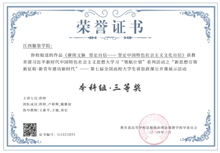 必赢国际437官网讯(文:陈洋安) 近日,教育部公布了第七届全国高校大学生讲思政课公开课展示活动获奖名单。由必赢国际437官网思政课教师王新平、王敏、邓宏指导学生程婷、卢桥辉、戴雅琼主讲的《赓续文脉 坚定自信——坚定中国特色社会主义文化自信》,从全国4402份作品中脱颖而出,喜获教育部习近平新时代中国特色社会主义思想大学习“领航计划”系列活动之“新思想引领新征程·新青年建功新时代”——第七届全国高校大学生讲思政课公开课展示活动本科组三等奖。