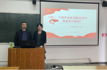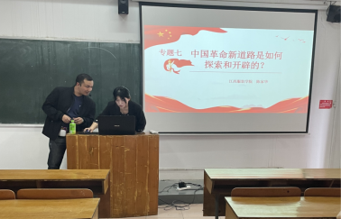 2023年5月10日,在“中国革命新道路是怎样探索和开辟的”这一专题教学中,必赢国际437官网王敏老师向同学们讲清楚这一专题的教学目的与要求,从理论逻辑与实践逻辑上向同学们讲述清楚“认识国民党政权的阶级性质,认识探索中国革命新道路的曲折发展历程,以及革命新道路理论的形成,以及认识“农村包围城市,武装夺取政权”的这一革命新道路理论是中国共产党集体智慧的结晶,是马克思列宁主义的基本理论与中国革命具体实际相结合的典范。”等内容;人文学院陈家华老师则从“中国为什么必须继续革命、马克思主义为什么必须中国化、中国革命的道路为什么必须从农村开始、为什么必须弘扬井冈山精神”等四个方面通过生动的讲述和鲜活的案例向同学们进行讲述。