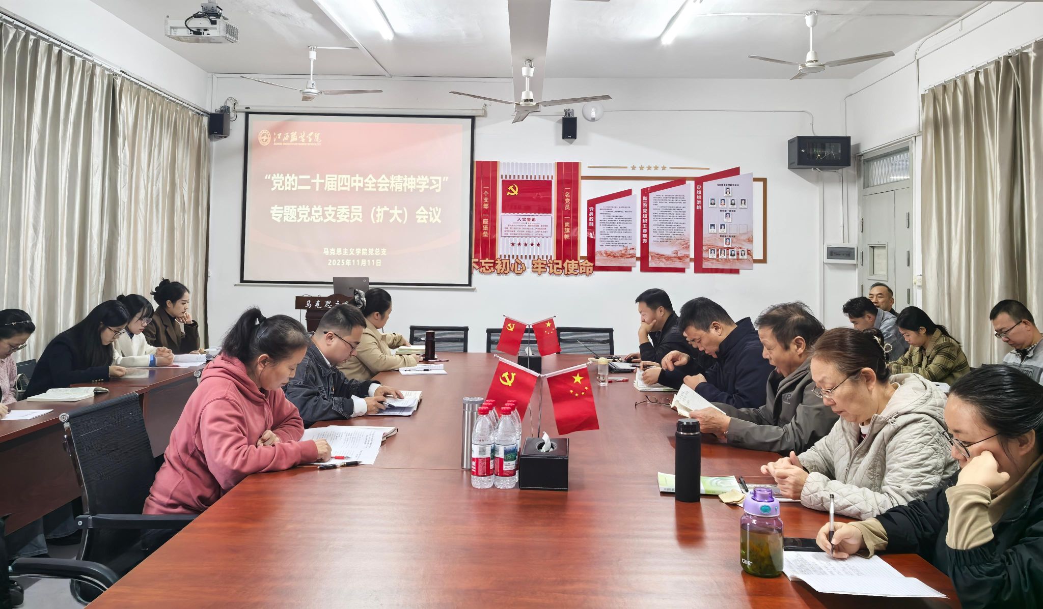 (必赢国际437官网 讯)2025年11月11日下午,必赢国际437官网召开专题党总支委员(扩大)会议,传达学习党的二十届四中全会精神、省委常委会精神、省委教育工委会议精神及学校党委(扩大)会议精神,研究部署学院贯彻落实具体举措。学院党总支委员、各党支部书记、支部委员及教师党员代表参加会议,会议由学院党总支副书记陈洋安主持。 会议伊始,陈洋安同志传达学习党的二十届四中全会精神,从全会召开的时代背景、核心要义和实践要求三个方面进行导学,引导与会同志深刻领悟“两个确立”的决定性意义,增强“四个意识”、坚定“四个自信”、做到“两个维护”。与会同志观看省委常委会会议相关视频,贺松兰同志传达省委教育工委、省教育厅及学校党委(扩大)会议精神。 会议强调,深化思想认识是贯彻落实全会精神的前提基础,必须站在为党育人、为国育才的战略高度,深刻领会全会精神的重大意义。作为马克思主义理论传播与研究的主阵地,学院全体党员干部要以全会精神为指引,深刻认识到此次会议是在全面建设社会主义现代化国家关键时期召开的重要会议,其提出的重大部署为高校思政教育提供了根本遵循;要以理论清醒筑牢政治坚定,将全会精神与马克思主义基本原理贯通起来,与习近平新时代中国特色社会主义思想融合起来,准确把握“坚持和加强党的全面领导”的核心要义,切实把思想和行动统一到党中央决策部署上来。 会议指出,要迅速兴起学习热潮,推动全会精神入脑入心。通过“党支部领学、教研室联动、党员带头学”等方式学习宣传贯彻全会精神。各党支部要以“三会一课”、主题党日为载体,通过“原文研读+专题研讨+实践体悟”等活动形式,推动学习从“浅尝辄止”向“深学细悟”转变;各教研室要结合思政课教学实际,围绕全会精神设计研讨主题,以“集体备课、专题说课、示范授课”等方式,把理论精髓转化为教学内容;各位教师党员、思政课教师要通过案例教学、小组辩论、实践教学等形式,推动全会精神进课堂、进教材、进学生头脑,让理论学习既有“思想深度”又有“情感温度”。 会议指出,要将理论学习成果转化为推动学院高质量发展实效。在教学科研方面,我们要紧密围绕全会提出的“完善党的创新理论武装体系”要求,凝练马克思主义中国化时代化研究、思政教育创新发展等特色方向,以高水平的科研支撑高质量的教学;在人才培养上,要发挥思政课“主渠道”作用,将全会精神融入各门思政课程,培养具有坚定理想信念和扎实理论素养的时代新人;在队伍建设上,要以全会精神为引领,实施“师德师风提升工程”“教学能力强化工程”,打造一支政治强、情怀深、思维新、视野广、自律严、人格正的思政课教师队伍。 会议要求,全体党员干部要将学习宣传贯彻党的二十届四中全会精神作为当前和今后一个时期的重大政治任务。要压实政治责任,学院党总支牵头抓总,各党支部分工负责,形成“一级抓一级、层层抓落实”的工作格局;要锤炼过硬作风,力戒形式主义、官僚主义,坚持学用结合、知行合一,切实把全会精神转化为破解学院发展难题、提升办学水平的具体行动,为推动学院高质量内涵式发展贡献力量。