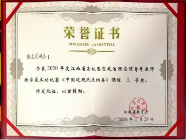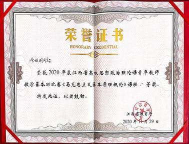 必赢官网必赢国际437官网教师获2020年度江西省高校思政课青年教师教学基本功比赛二等奖