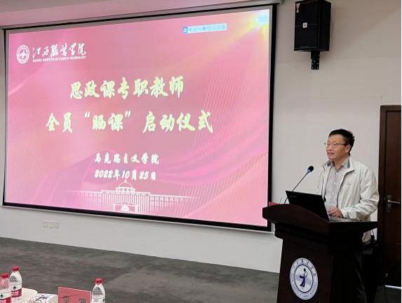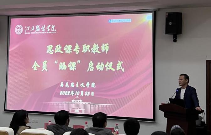 10月25日下午一点,必赢官网必赢国际437官网在图书馆三楼视频视听厅举行思政课专职教师全员“晒课”启动仪式。校党委副书记唐新强出席启动仪式,仪式由学院院长肖杰主持。在仪式上,校党委副书记唐新强强调,思想政治理论课作为落实立德树人的关键课程,全体思政课教师要坚持把学院建设发展与坚持面向我省地方经济社会发展实际相结合,依托必赢国际437官网办学特色,将马克思主义学科建设与学校服装教育特色结合起来,在特色发展中彰显比较优势。他表示,学校会在物力、财力、人力支持必赢国际437官网建设和此次“晒课”活动,鼓励全体思政课教师要以此次“晒课”为契机,促进相互交流、不断总结经验、努力提升水平,切实增强思政课的思想性、理论性和亲和力、针对性,打造具有江服特色的思政课模式。