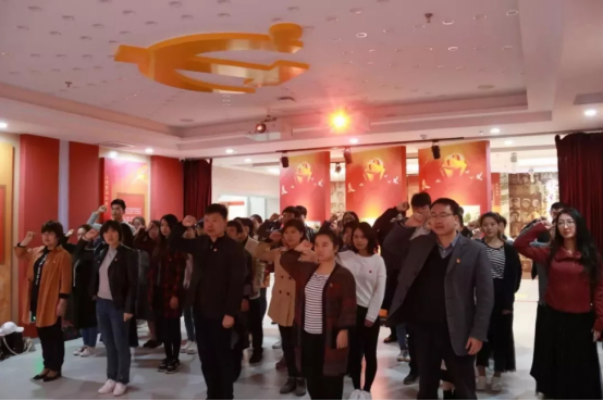 来到宣誓厅,在领誓人慷慨激昂的领誓声中,全体党员同志重温入党誓词,进行庄严宣誓。铿锵有力的声音,传达出我们对党坚定的信仰。誓词是一种使命,信仰是一种力量,我们会在中国共产党的带领下在共产主义的道路上勇往直前。