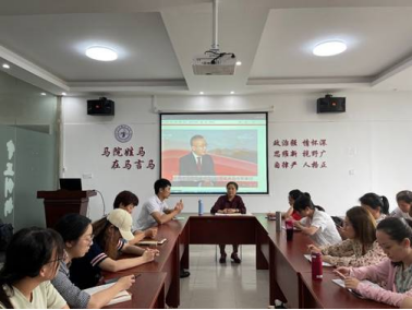 贺松兰副院长谈到,听了习总书记的讲话很震撼,作为9500多万党员中的一员,要履行好作为思政课老师的本职工作,讲好思政课,为党育人贡献自己的一份力量。
