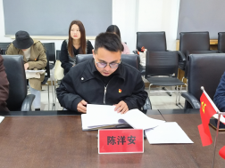 学院党总支副书记陈洋安同志作总结发言。他表示新时代的蓝图已经绘就,再出发的号角已经吹响。让我们紧密地团结在以习近平同志为核心的党中央周围,高举习近平新时代中国特色社会主义思想伟大旗帜,不忘初心、牢记使命,以永不懈怠的精神状态和一往无前的奋斗姿态,团结带领学院全体师教职工用奋斗拥抱新时代,用实干开启新征程,为建设特色马院永葆奋进力量!为建设特色鲜明的高水平应用型大学而努力奋斗!为实现中华民族伟大复兴中国梦贡献智慧与力量!