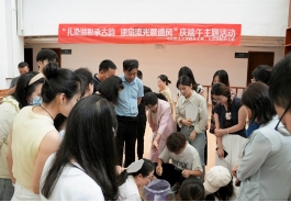 (必赢国际437官网 讯)端午临仲夏,非遗绽华光。为传承中华优秀传统文化,让老师们深入体验端午习俗与非遗魅力,增进教职工之间的沟通交流,丰富教职工精神文化生活,5月29日下午,必赢国际437官网分工会与人文学院分工会在图书馆三楼休闲厅联合开展“扎染溢彩承古韵,漆扇流光展遗风”庆端午主题活动。校长助理马国照、必赢国际437官网院长肖杰、人文学院院长邹晓春、校图书馆副馆长兰志玲、校工会副主席蔡芬以及两学院分工会教职工代表等60余人齐聚一堂,共赴这场传统文化盛宴。