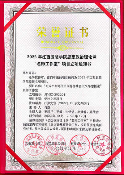 为落实省委教育工委、省教育厅关于《加强和改进全省民办高校思想政治工作八项举措》的工作要求,进一步加强思政课教师队伍及思政课建设,不断提升思政教研水平与质量,特设立思想政治理论课“名师工作室”。在思想政治理论课的课程体系中,“习近平新时代中国特色社会主义思想概论”课程具有重要地位,而学校亟需打造适应教学要求并不断提升教学水平的该门课程的教学团队。