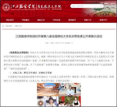 此外,工作室积极开展“一线课堂”“双师同堂”“专题+艺术”特色思政课,组织师生开展大学生讲思政课活动等,继续推进优质教学资源建设,制作了多场专题示范性视频录像课。