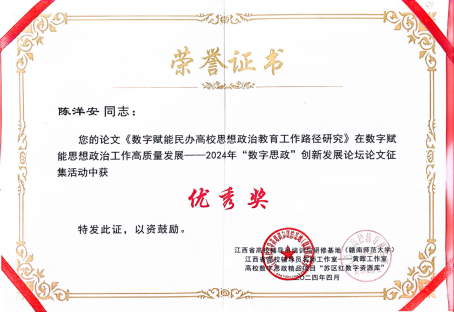 5.工作室成员陈洋安获数字思政创新发展论坛论文征集活动优秀奖