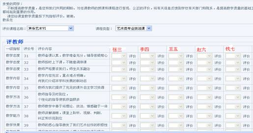 若出现多个教师,学生可以有选择地对自己的任课老师进行评价,不要多评,也不要少评。