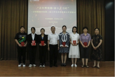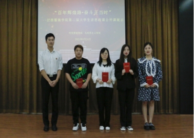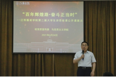 6月24日下午,“百年辉煌路•奋斗正当时”——校第二届大学生讲思政课公开课展示活动暨“第五届全国高校大学生讲思政课公开课展示”选拔赛在行政楼一楼报告厅进行。校长薛家宝、校党委副书记唐新强出席活动。江西科技师范大学马院硕士生导师郜志刚博士、南昌航空大学马院硕士生导师祖彦博士、南昌工程学院马院教师王诚德博士担任比赛评委。