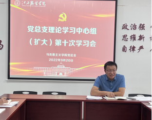 最后,学院院长肖杰同志对本次学习进行总结讲话,肖院长强调作为一名党员、一名思政课教师要有高度的政治自觉,要将理论学习与教学工作密切联系在一起;要将所学的知识融入思政课教学当中,要具有学术性、学理性、逻辑性的阐述表达;同时要增强学习效果,可以通过领学、交流学、体验学等多种学习方式,创新学习机制,提高学习效果,切实将理论学习运用到实践当中,营造良好的学习氛围,积极营造喜迎党的二十大的浓厚氛围。