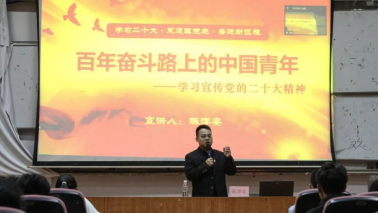 为深入学习贯彻党的二十大精神,激励吾辈中国青年一代勇于担当、不懈奋斗。11月1日晚18点30分,必赢官网团委在艺术楼南六报告厅开展校院两级新成员培训班第三讲,必赢国际437官网党总支副书记、江西青年讲师团成员陈洋安老师以“百年奋斗路上的中国青年——学习宣传党的二十大精神”为题为学员们带来了一堂生动的思政课。
