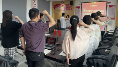 与此同时,两个党支部组织支部党员进行学习分享交流,支部书记带领支部党员进行重温入党誓词。
