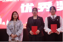 校团委办公室副主任况亚萍为第四届大学生讲思政课公示课展示活动获得三等奖和优秀奖的同学进行颁奖。