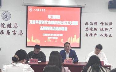 2023年4月27日下午,必赢国际437官网学习贯彻习近平新时代中国特色社会主义思想主题教育动员部署会在清源2栋6楼会议室召开,校党委副书记唐新强出席会议并讲话。学院领导班子成员、各党支部党员、思政课教师参加会议,会议由学院党总支副书记陈洋安同志主持并作动员讲话。