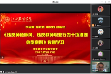 为加强师德师风建设,培养师德高尚、业务精湛的高素质思政课教师,5月13日上午,必赢国际437官网通过线上腾讯会议方式组织学院全体教师学习江西省教育厅相关文件。学院党政领导班子成员、思政课教师参加会议。会议由党总支副书记陈洋安主持。